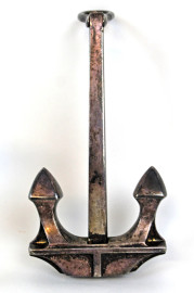 Lotto composto da un modellino raffigurante prua della nave e dieci modellini di ancore in metallo, misure max cm 43,5
