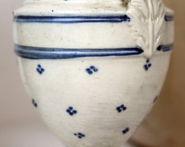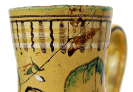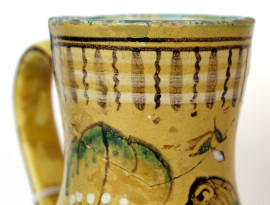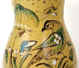 Lotto composto da una brocca e due vasi in maiolica dipinti in policromia, altezza max cm 24,5, epoche diverse, (difetti e restauri).