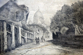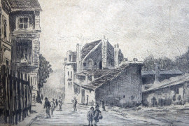Lotto di cinque stampe raffiguranti paesaggi francesi, misure max cm 9,5x14, XIX secolo, entro cornici.