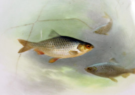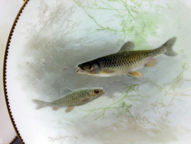 Lotto di dodici piatti in porcellana Royal Doulton per Tiffany & Co. New York, riserve con decori dipinti raffiguranti pesci, diam. cm 22,5, (difetti e restauri).