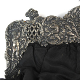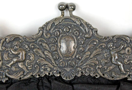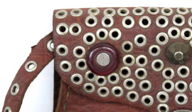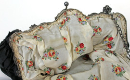 Lotto di due borsette a tracolla, di cui una in tela con fodera interna a motivi floreali e chiusura in argento ed una in cuoio con dettagli traforati, lunghezza max cm 63, (difetti e segni di utilizzo).