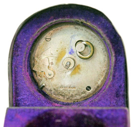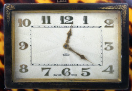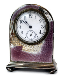 Lotto di due orologi da tavolo con quadrante a numeri arabi, di cui uno in bachelite ed uno in argento, inizi XX secolo, misure max cm 8,5x11,5, (difetti, meccanismi da revisionare).