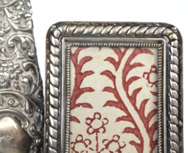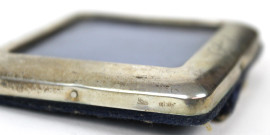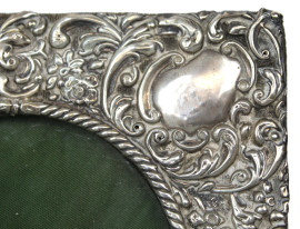 Lotto di otto piccole cornici portafoto di linea ovale e rettangolare in argento e metallo argentato con decori cesellati, misure max cm 15x15, XX secolo, (segni del tempo).