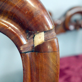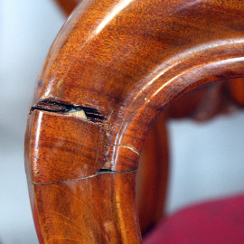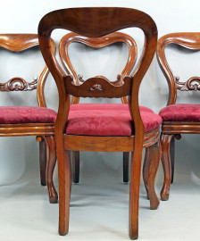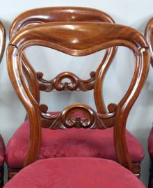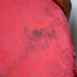 Lotto di quattro sedie in mogano, XIX secolo, seduta in stoffa rossa, (difetti).