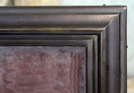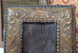 Lotto di sei cornici portafoto di linea rettangolare, dimensioni e materiali diversi, misure max cm 35x29, XX secolo, (difetti).