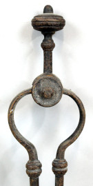 Lotto di tre accessori da camino in bronzo, composto da una paletta, un attizzatoio ed una pinza, misure max cm 73,5, XX secolo, (difetti).