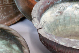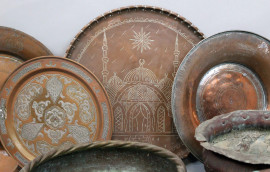 Lotto di tredici oggetti diversi in rame e metallo, altezza max cm 47
