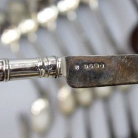 Lotto di varie posate in argento, Inghilterra, XIX secolo, peso lordo gr. 4312, (difetti)