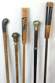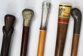Lotto di venti bastoni da passeggio, epoche e manifatture diverse, lunghezza max cm 98,5, (difetti).