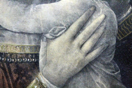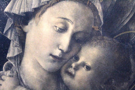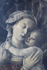 Madonna con Bambino, stampa a colori, cm 37x25,5, XX secolo, entro cornice.