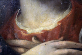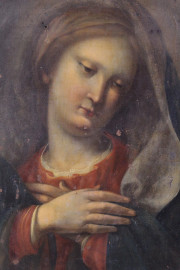 Madonna, olio su rame, cm 24,5x17,3, XVIII secolo, entro cornice, (difetti).