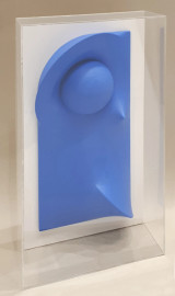 Maestro dell’Arte Spazialista, Superficie blu numero 51, 2017, vernice acrovinilica su tela estroflessa, cm 27x50, entro teca in plexiglas, firmato e datato al retro, entro cornice
