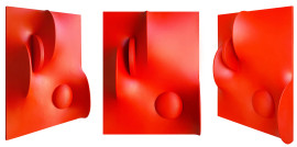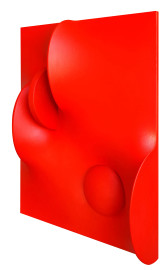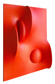 Maestro dello Spazialismo, Composizione in rosso, tela estroflessa e vernice acrovinilica, cm 30x40, firmato e datato al retro, con autentica