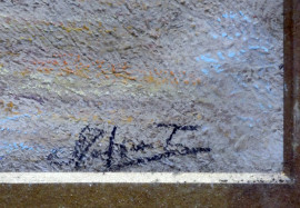 Marina con barche, dipinto a olio, cm 20x25, firmato, entro cornice.