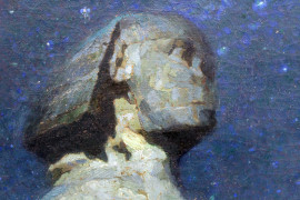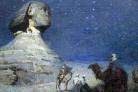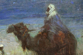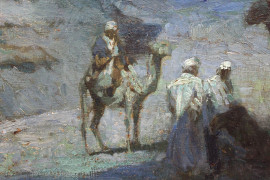 Notturno nel deserto, olio su tela, cm 62x71, datato Cairo 1910, entro cornice.