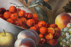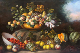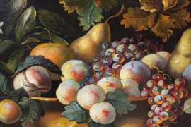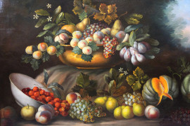 Natura morta con frutta, olio su tela, cm 80x120, firmato, entro cornice.