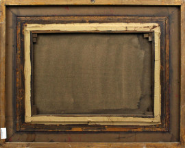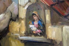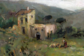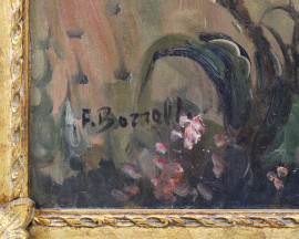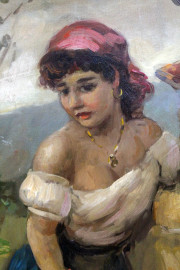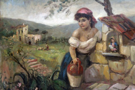 Paesaggio con acquaiola, olio su tela, cm 50x70,frimato, entro cornice.