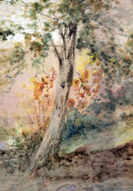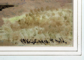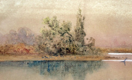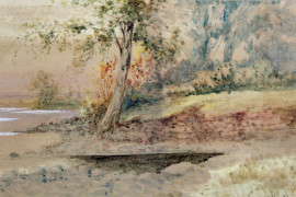 Paesaggio fluviale, acquarello su carta, cm 19x54, firmato, entro cornice.