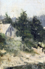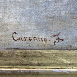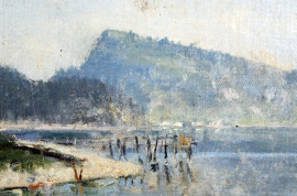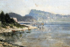 Paesaggio lacustre, olio su tela, cm 26x33, firmato Carcano F., entro cornice.