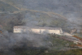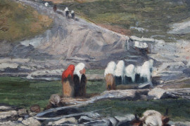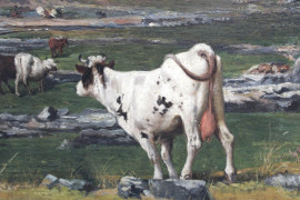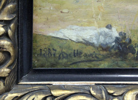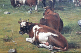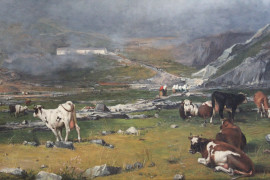 Paesaggio piemontese con figure ed armenti al pascolo, olio su tela, cm 75,5x105,5, firmato e datato, entro cornice.