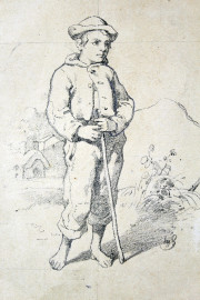 Pastorello, matita su carta, cm 19x13,5, siglato.