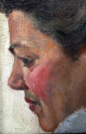 Pittore toscano del XIX secolo, Ritratto di donna, olio su tela, cm 19,5x17, entro cornice.