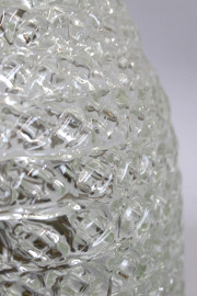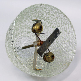 Plafoniera in cristallo di forma circolare anni '80, struttura interna montata per due lampadine, altezza cm 24, diam. cm 25, (difetti, meccanismo da revisionare).