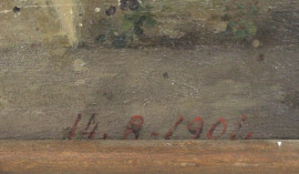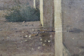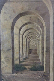 Portico con arcate, olio su compensato, cm 60,5x40, datato in basso a destra, entro cornice.