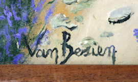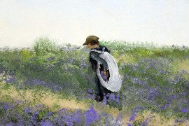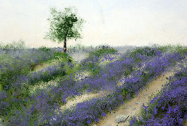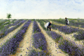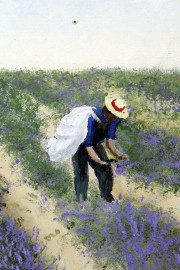 Raccolta della lavanda, olio su tela, cm 50x70, firmato, entro cornice.
