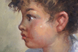 Ritratto di giovane, olio su tela, cm 70x50, firmato, entro cornice.