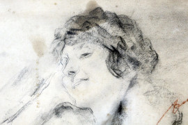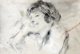 Ritratto di ragazza, tecnica mista su carta applicata su tela, cm 30x36, firmato, entro cornice.