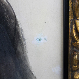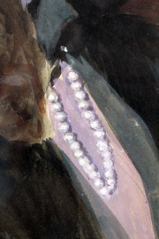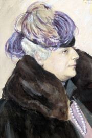 Ritratto di signora con cappello, acquarello su carta, cm 40x30, firmato e datato, entro cornice.