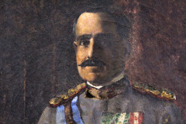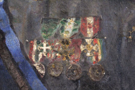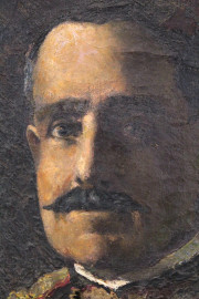 Ritratto di ufficiale, olio su tela, cm 181x81,5, prima metà XX secolo, (difetti).