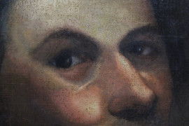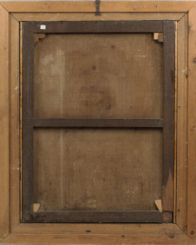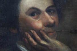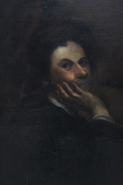 Ritratto d'uomo con pipa, olio su tela, cm 94x74, XIX secolo, entro cornice.