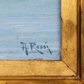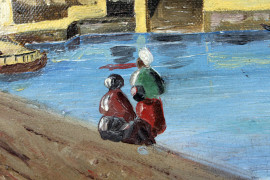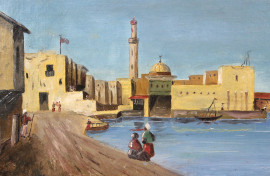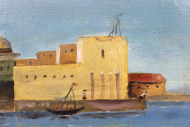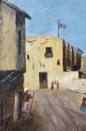 Scorcio di città orientale, olio su tela, cm 22x33, firmato, entro cornice.