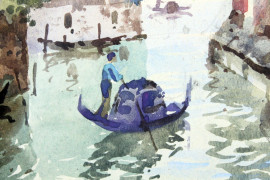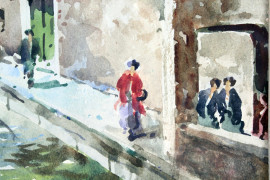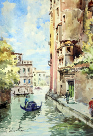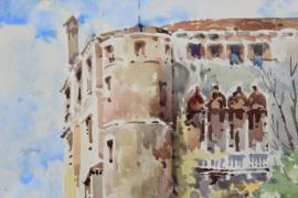 Scorcio su Palazzo Contarini a Venezia, acquarello su carta, cm 28x22, firmato, entro cornice.