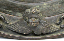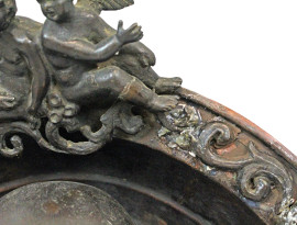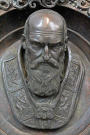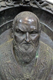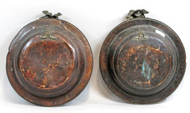 Scultore romano del XVII secolo, Coppia di altorilievi in bronzo a patina brunita su piatti in rame, raffiguranti Papa Paolo III e Papa Sisto V, cm h 53,5x48x8.