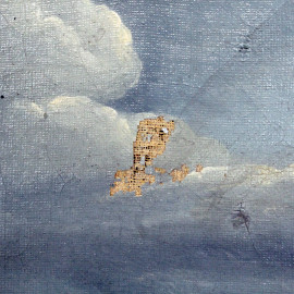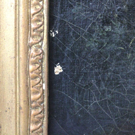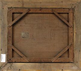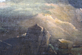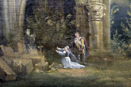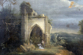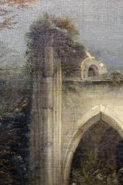 Scuola francese del XIX secolo, Paesaggio con rovine di chiesa gotica, olio su tela, firmato e datato "S.S. 1831", entro cornice, (cadute di colore).