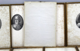 Serie di quindici incisioni raffiguranti personaggi illustri, cm 34x24, XIX secolo, entro cornici.