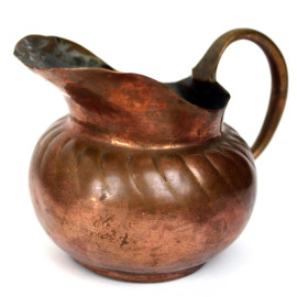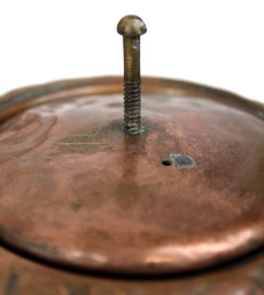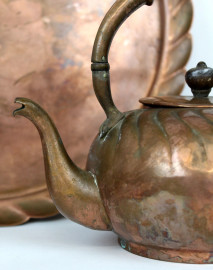 Servizio da tè e caffè in rame, pz. 5, altezza max cm 18, XX secolo, (difetti).