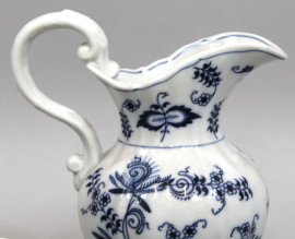 Servizio da tè in porcellana bianca e blu, composto da dodici tazzine, dodici piattini ed una lattiera, altezza max cm 20, marchio Blue Danube alla base, (lievi difetti).