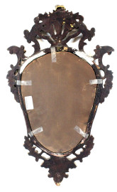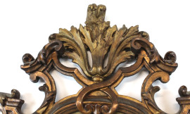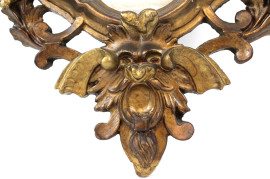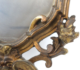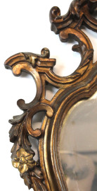 Specchiera di linea sagomata in legno intagliato e dorato, inizi XX secolo, cm h 77, (difetti e restauri).