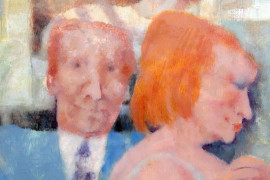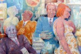 Figure, olio su cartone, cm 80x80, entro cornice.