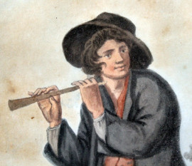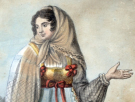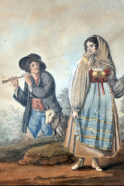 Uomo e donna della Villa di Massagrogaja, acquarello su carta, cm 33x25, XIX secolo, entro cornice.