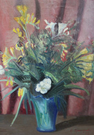 Vaso di fiori, olio su tela, cm 60x50, firmato, entro cornice