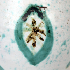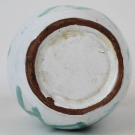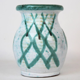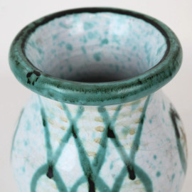 Vaso in ceramica dipinta e smaltata a motivi astratti nei toni del verde, cm h 16,5, probabile manifattura Vietri.