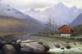 Veduta del Vallese, olio su tela, cm 33,5x48, firmato Canella, entro cornice.