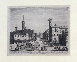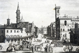 Veduta della Badia Fiorentina e del Palazzo del Potestà a Firenze, incisione inglese del XVIII secolo, cm 21x27, entro cornice.
