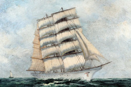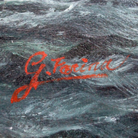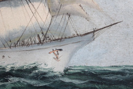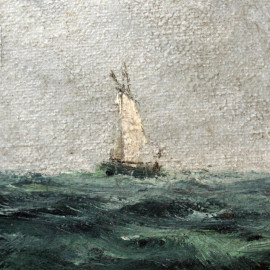 Veliero, olio su tela, cm 40x50, firmato, entro cornice, (lievi difetti).