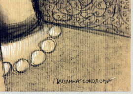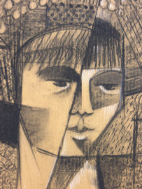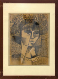 Artista cubo-futurista russo del XX sec., Ritratto femminile, carboncino e biacca su carta, cm 48x36, firmato in basso a destra in caratteri cirillici, entro cornice.